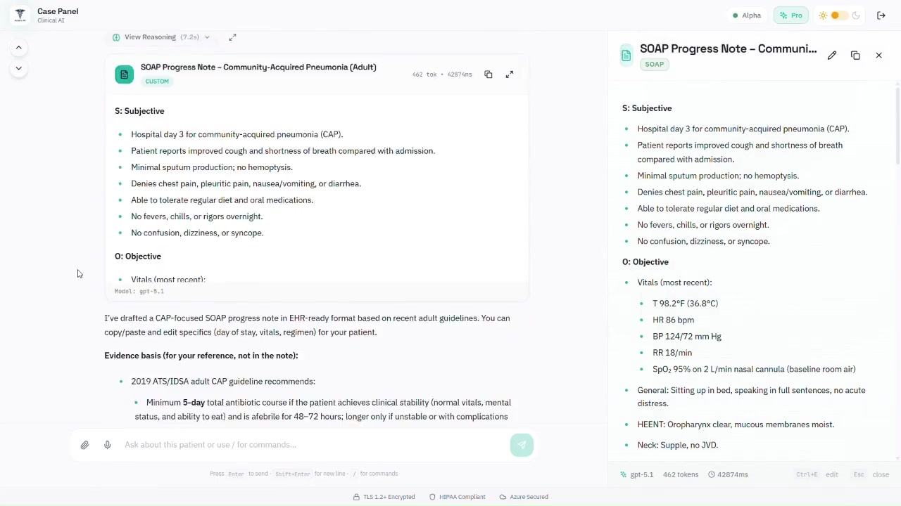 Ambient scribes like DAX, Abridge, and Suki record and transcribe patient conversations. CasePanel takes a different approach: we focus on documentation generation with evidence-based citations, the cognitive-heavy part of documentation. Voice transcription supported, but no ambient listening. No IT deployment required. Citation-backed drafts work with any EHR. CasePanel is built for hospital medicine.